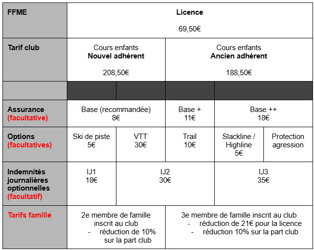- licence FFME valable pour la saison 2025-2026